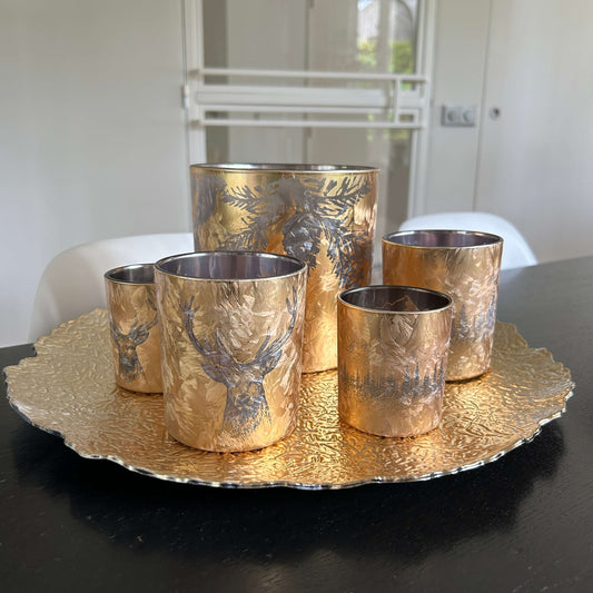 Waxinelichthouders met herfstprint in drie maten - GoudBreng een vleugje stijl in huis met dit mooie product.Waxinelichthouders met herfstprint in drie maten - GoudBreng een vleugje stijl in huis met dit mooie product.Normale prijs Vanaf €4,50Normale prijsEenheidsprijs / per-