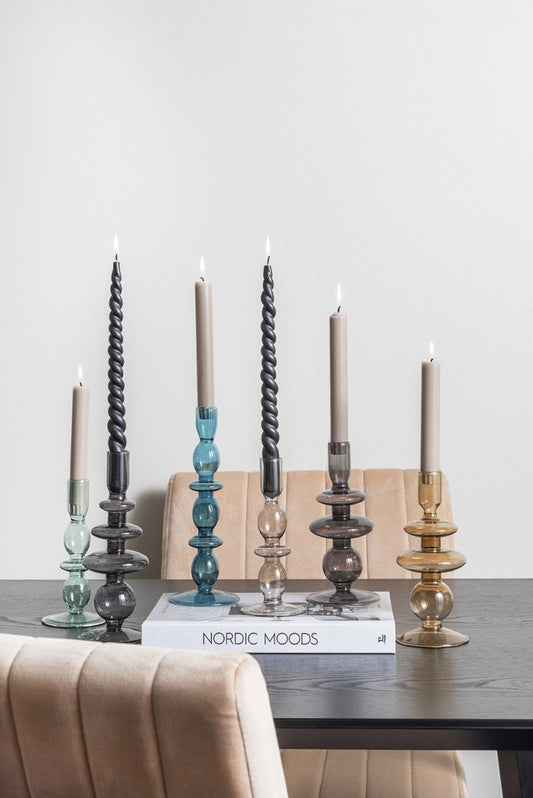 Glazen kandelaars passen helemaal bij de trends van nu. Steeds vaker zien we dat de kandelaren worden gecombineerd. Verschillende varianten, groottes en soorten om een speels effect te creëren. Ook met kaarsen kun je een kleurrijk geheel maken. Ons aanbod aan kaarsen ontdek je hier!