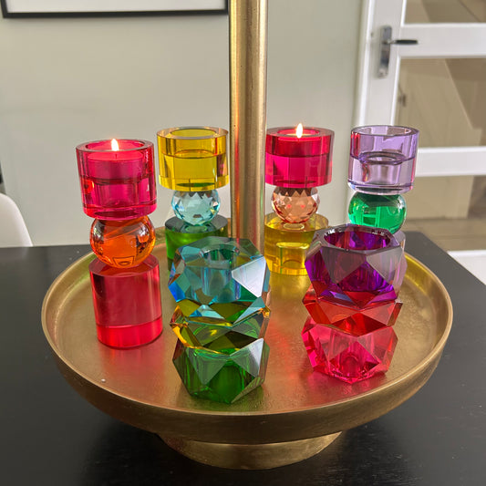Spiegelkandelaar multicolor van GlasBreng een vleugje stijl in huis met dit mooie product.Nog 2 op voorraad! Spiegelkandelaar multicolor van GlasBreng een vleugje stijl in huis met dit mooie product.Normale prijs Vanaf €24,95Normale prijsEenheidsprijs / per-