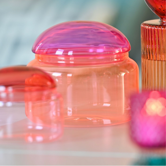 Glazen Voorraadpot in Paars & Neon Roze LargeBreng een vleugje stijl in huis met dit mooie product.Glazen Voorraadpot in Paars & Neon Roze LargeBreng een vleugje stijl in huis met dit mooie product.Normale prijs Vanaf €24,95Normale prijsEenheidsprijs / per-