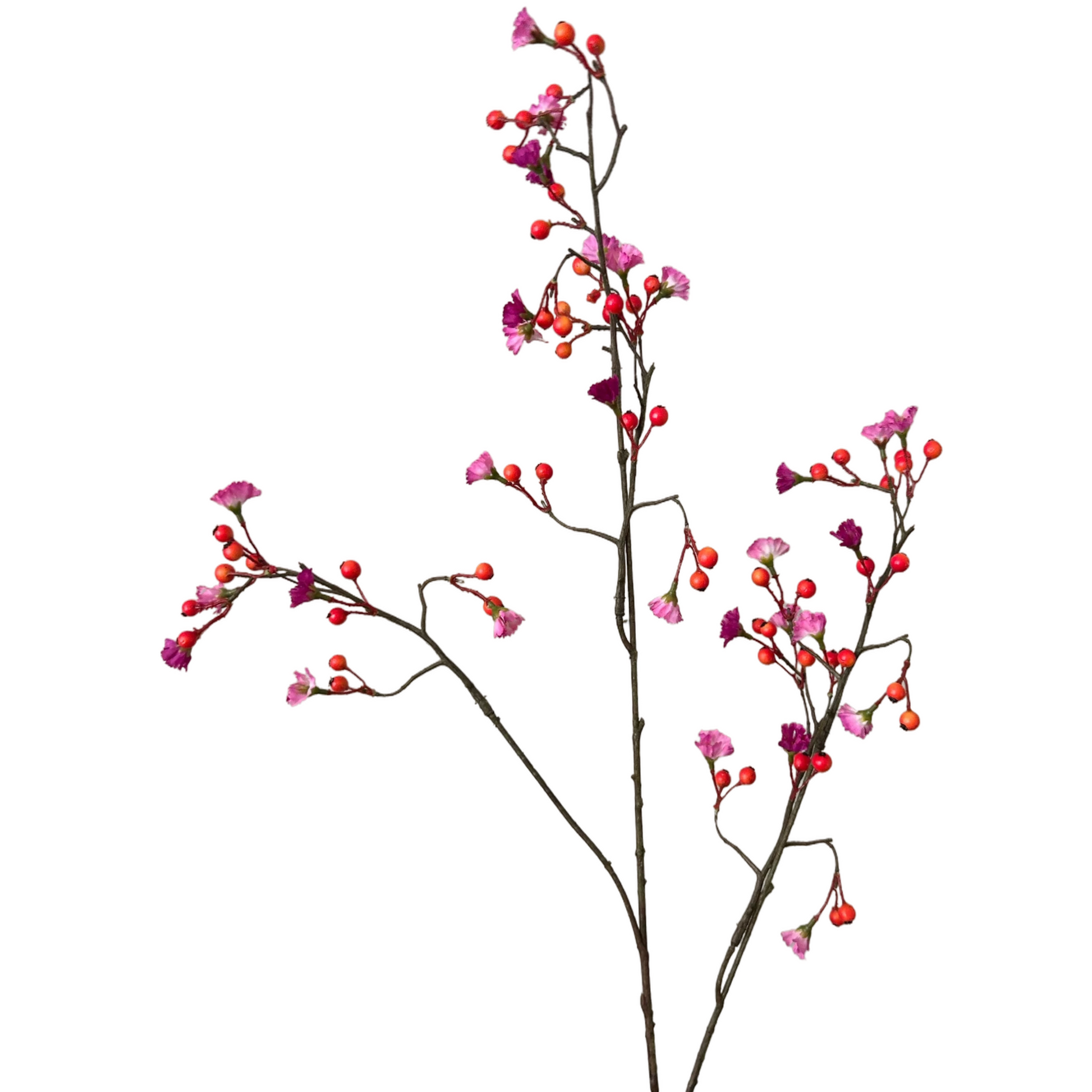 Creëer het hele jaar door een warme en uitnodigende sfeer in huis met de Silka Kunstmatige Bes- en Bloesemtak. Deze veelzijdige decoratietak van 94 cm combineert de rijke, warme kleuren van rode bessen met de zachte, frisse uitstraling van roze bloesems, waardoor je interieur elke seizoen mooi blijft.
