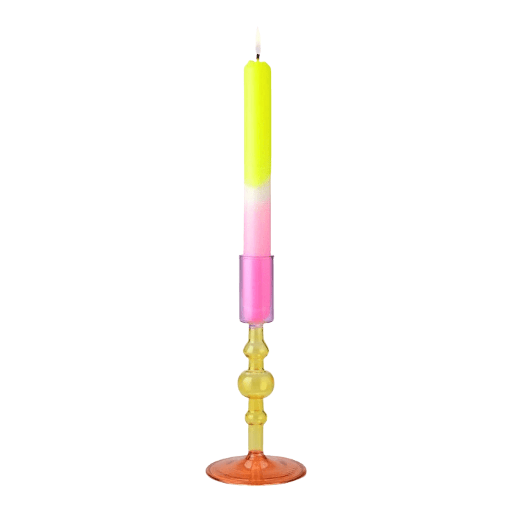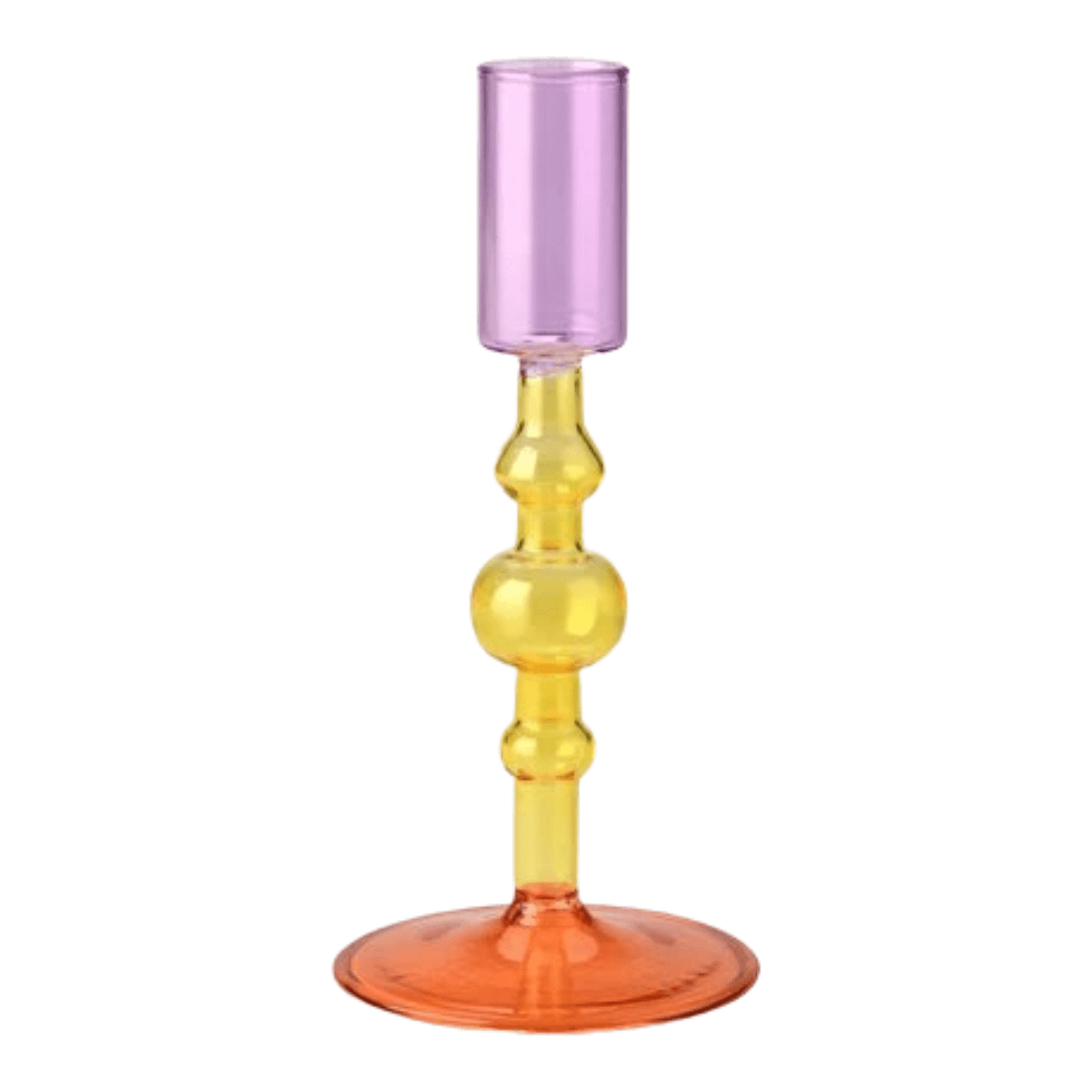 Glazen kandelaar oranje/geel/paars