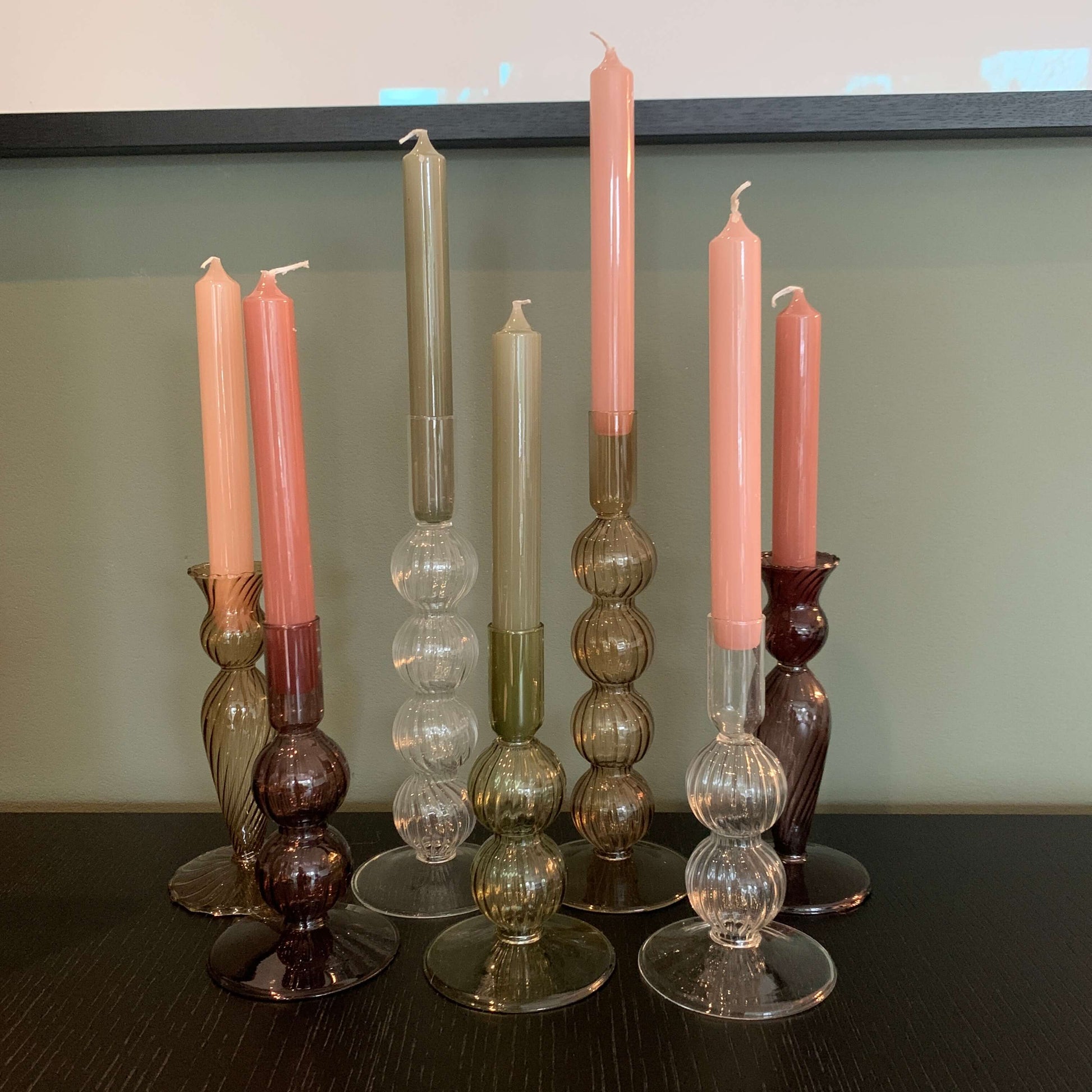 Met de kandelaar Swirl verreik je zelfs als het licht is je huis met een pronkstuk. De kandelaar is sierlijk en heeft een barok uitstraling. De Swirl kandelaar hebben we in twee verschillende kleuren glas .