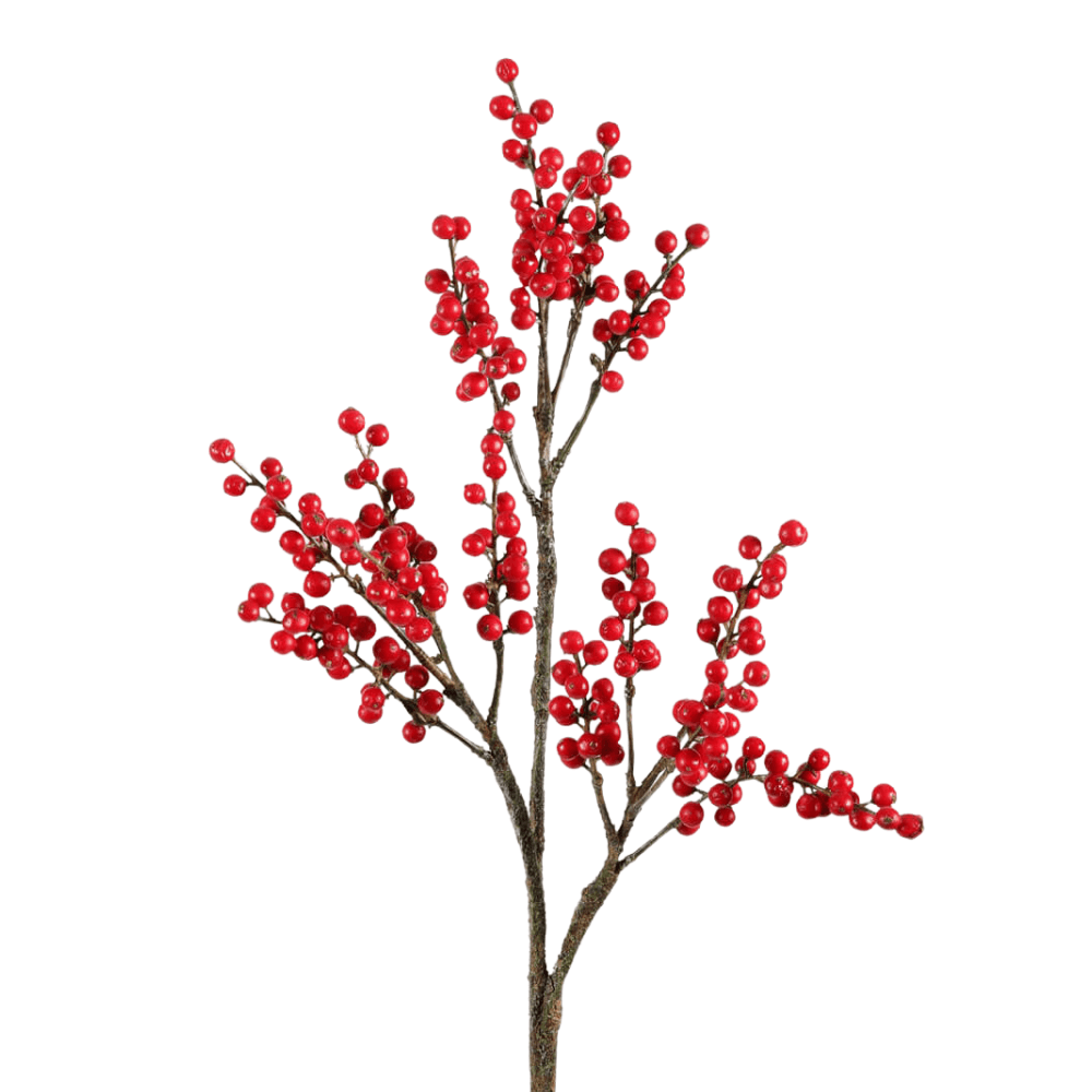 Deze kunstbessentak is 81 cm lang en zit vol met kleine, dieprode bessen. De tak heeft een natuurlijke vorm en een mooie verdeling van de bessen over de zijtakken. De steel is licht buigbaar, zodat je de tak makkelijk in model kunt brengen.