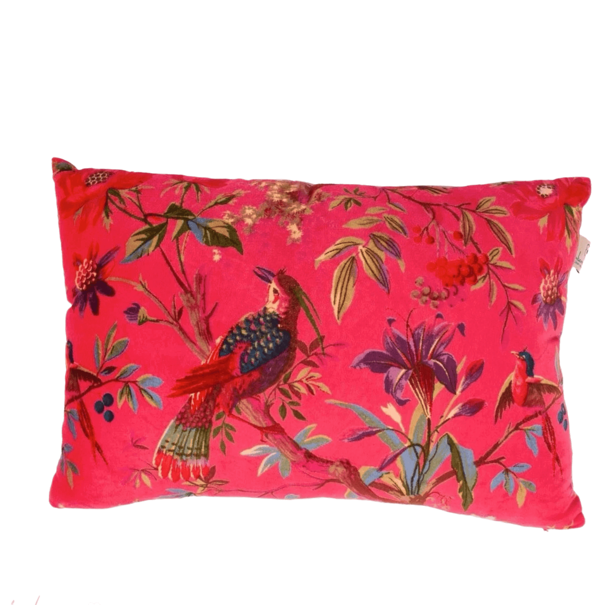Transformeer je leefruimte met het prachtige Imbarro Sierkussen Cherry Paradise. Dit levendige decoratieve kussen heeft een betoverend ontwerp geïnspireerd door de natuur, en brengt een kleur en sfeer  in elke kamer. Het kussen toont een gedetailleerd vogel- en bloemenpatroon op een rijke Cherry kleurige achtergrond. Bovendien is het ontwerp aan beide zijden van het kussen hetzelfde, wat zorgt voor een consistent en aantrekkelijk uiterlijk vanuit elke hoek.