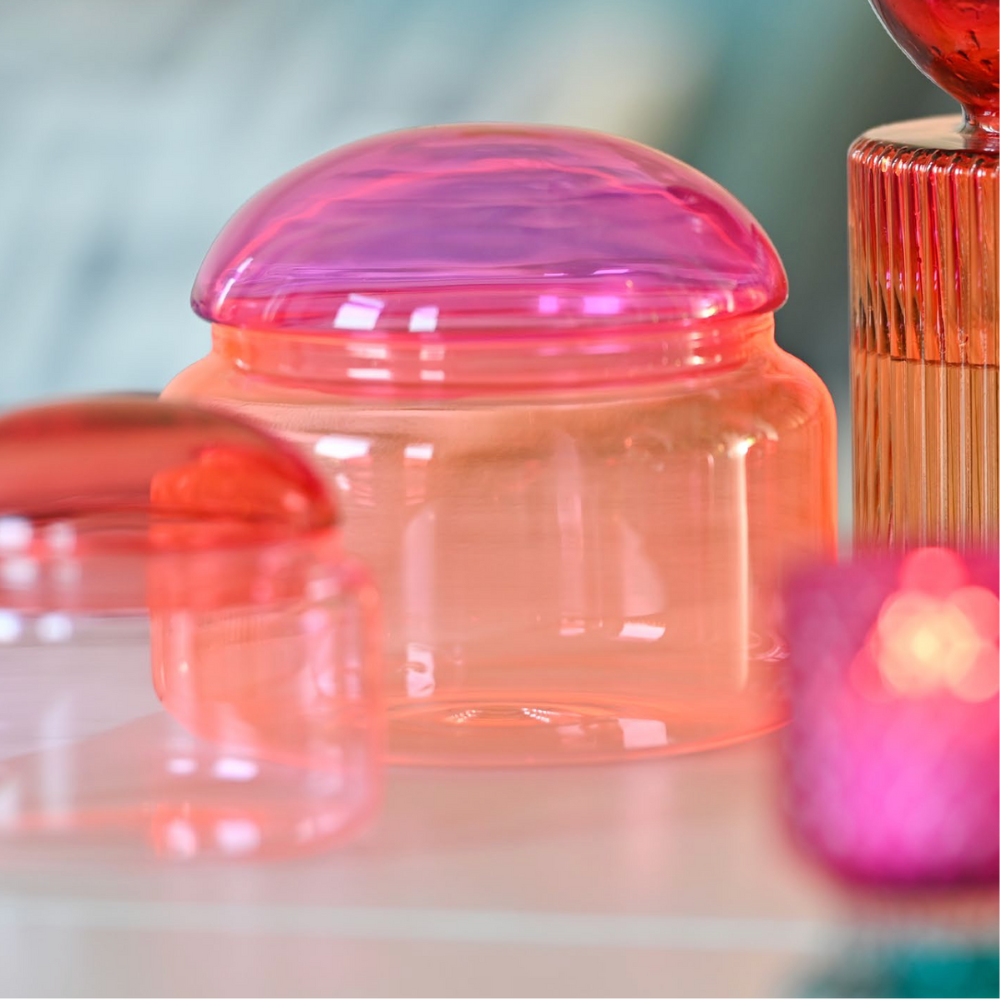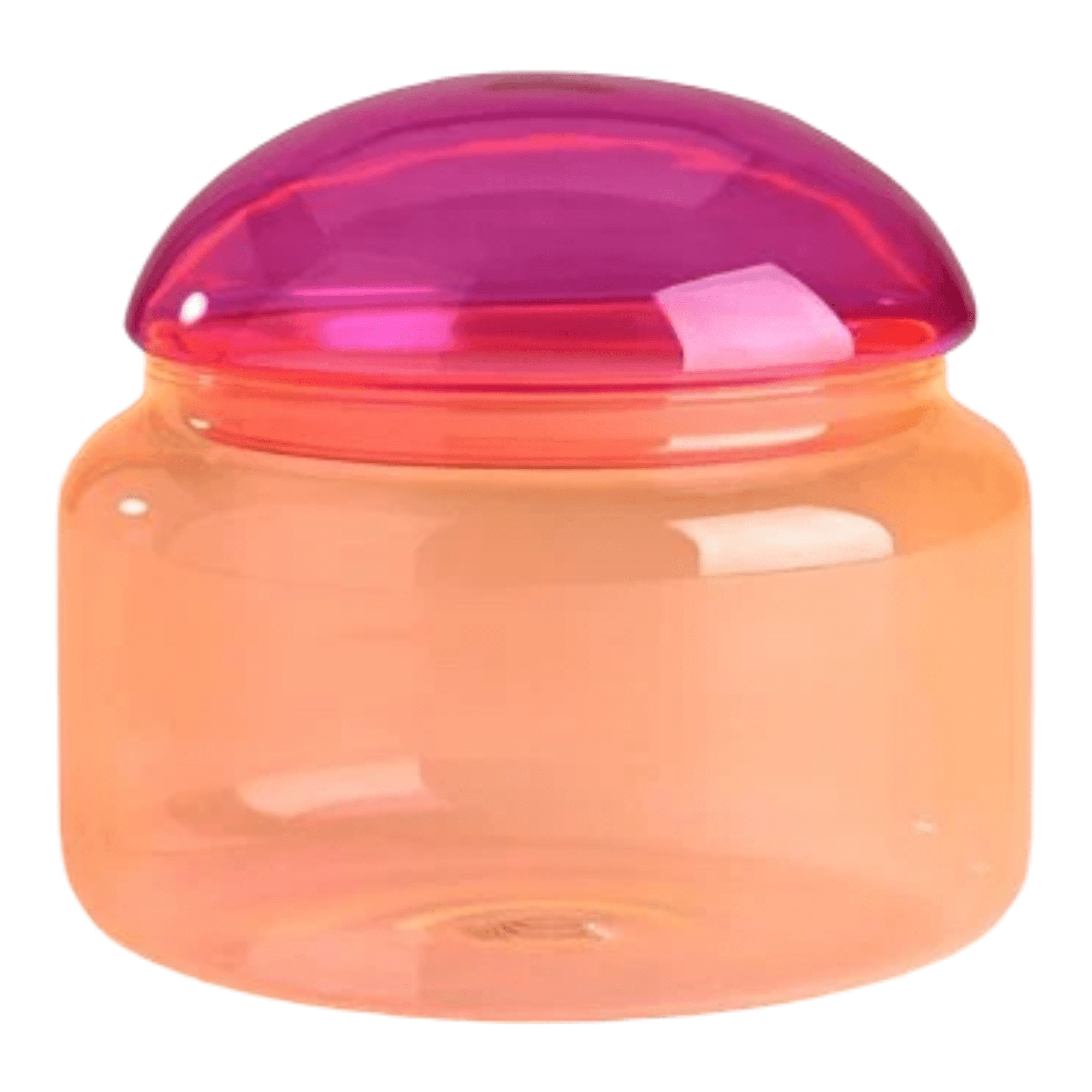 Breng een zonnige touch aan je keuken of badkamer met deze levendige, tweedelige opbergpot. Deze prachtige pot van glas is perfect voor het bewaren van alledaagse voorwerpen zoals watjes, snoepjes of zelfs kleine kantoorbenodigdheden. De doorschijnende eigenschap zorgt ervoor dat je in een oogopslag ziet wat erin zit.